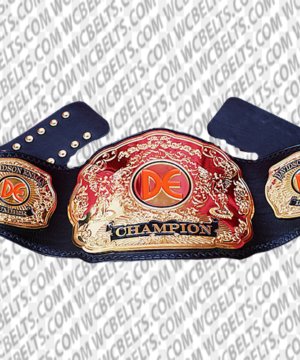 The Big Gold WWE Championship is a retired world heavyweight professional wrestling championship that has a rich history and legacy. The belt is referred to as the “Big Gold” because of its distinctive design. It boasts a large golden plate, exclusively detailed and decorated with elegantly etched symbols, reflecting the hard-won glory and pride of the holder.